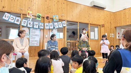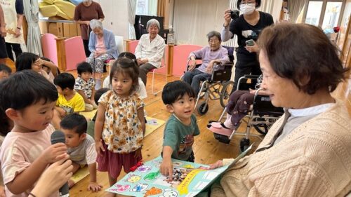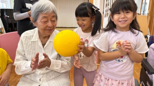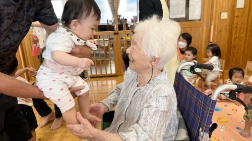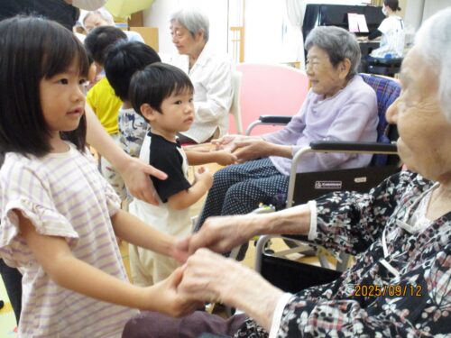 おじいちゃんおばあちゃん方と握手したり、手を叩いたり…「あんたがたどこさ」の
