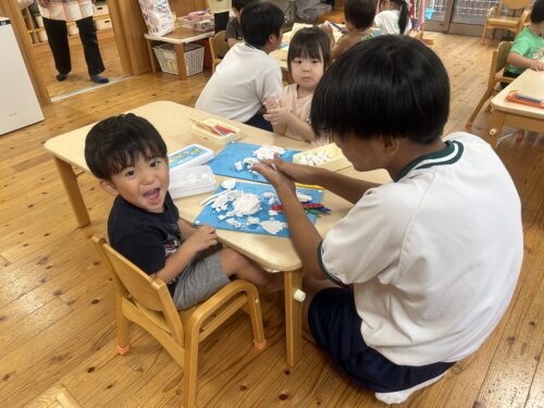 優しいお兄さんお姉さんの関わりで、あっという間に子ども達の輪の中へ。