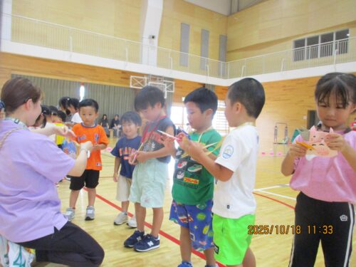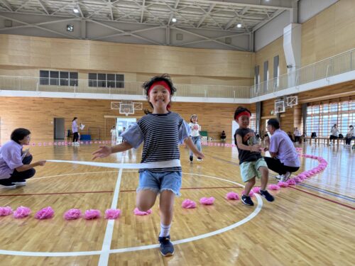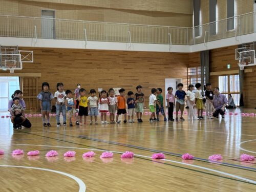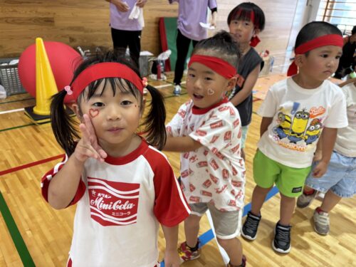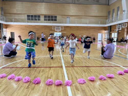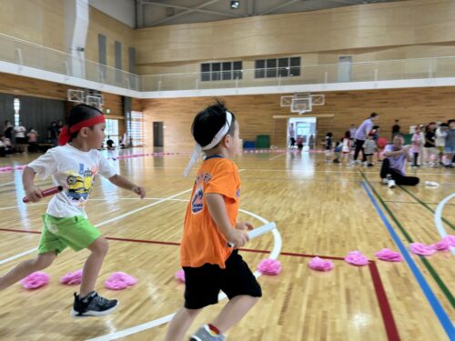 待ちに待った運動会でした。練習を行う中で、保護者の方と一緒にできる競技を楽しみにしていたり、かけっこやリレーは、気合十分、やる気満々の子ども達でした。かけっこの練習を始めた頃は世界陸上の影響かクラウチングスタートのポーズで入るお友達もいました😊 暑い中練習を行い、勝ち負けにこだわるお友達が増え、悔し涙を流す姿も見られたり、最初は苦戦していた組体操も練習を重ねるごとにできるようになり、揃ってきたりと、日々の成長を感じる場面が沢山ありました。迎えた本番、子ども達のキラキラした表情が印象的でした!子ども達の思い出の1ページにしっかりと刻まれたことと思います。そして運動会までの経験がまた一つ心と体を大きく成長する物になったことと思います。