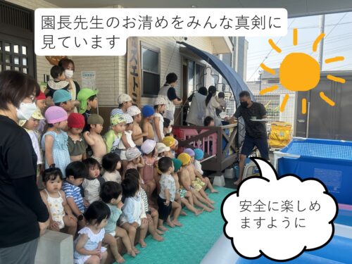 プールを安全に楽しく使えるように、園長先生が水の神様に祈願してくださいました。