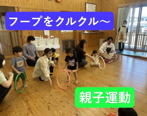 親子運動では保護者と子どもがスキンシップをとりながら運動をしました。
